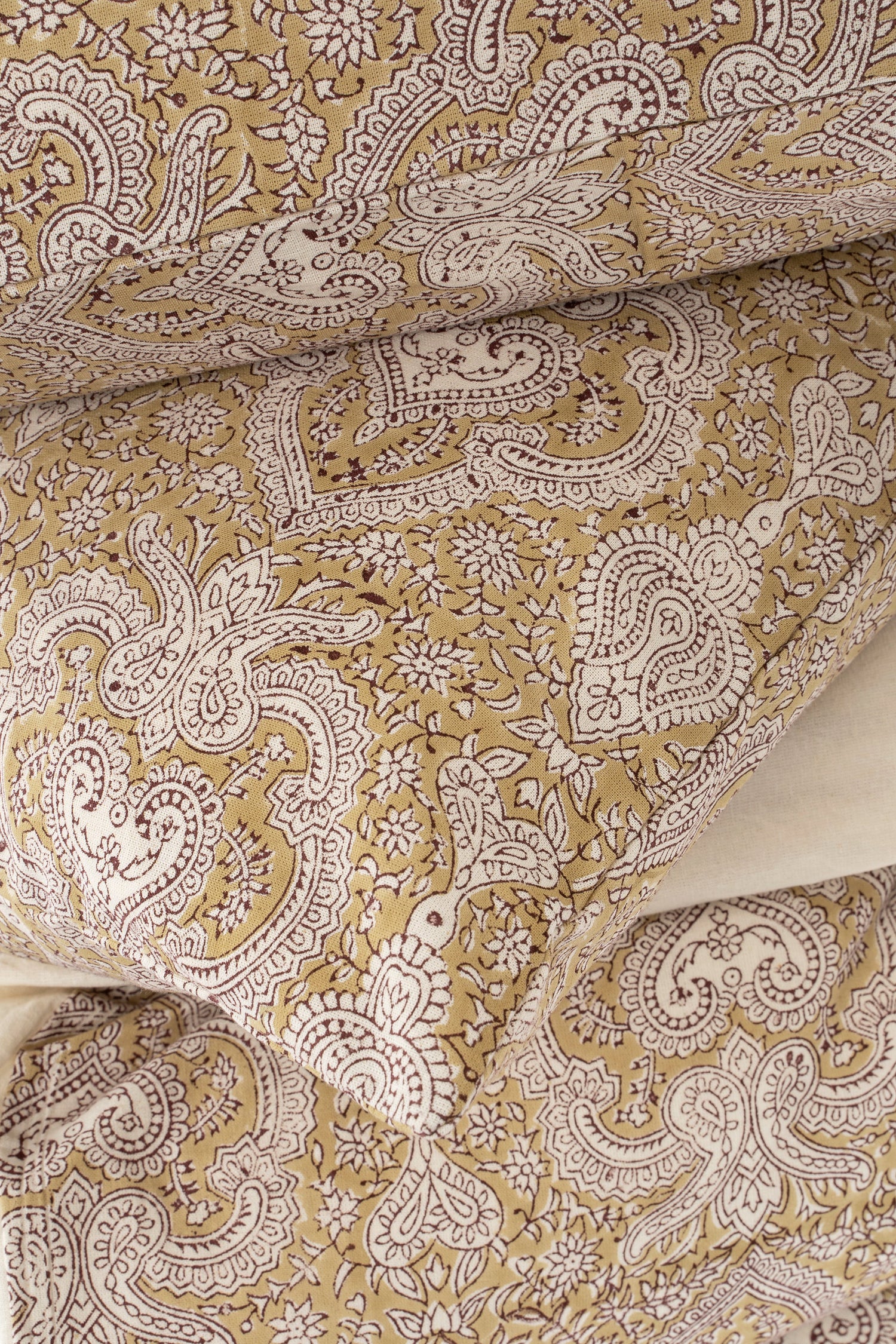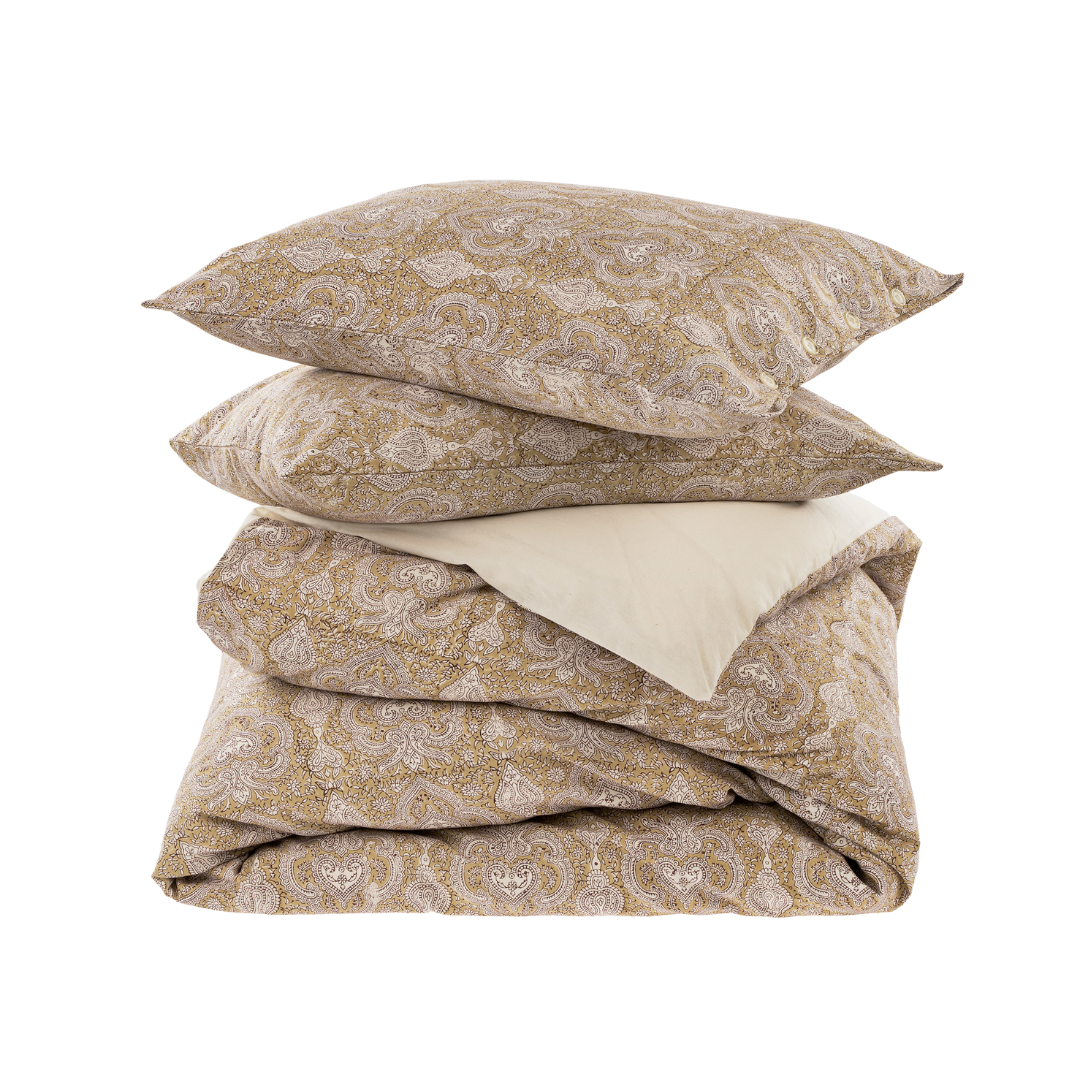 Bedtime just got better. Sink into the Astrid Block Print Duvet Set at the end of a long day for all-encompassing rest, relaxation, and a focus on me-time. We love the sophisticated and fresh feeling they bring to the bedroom, especially when styled with an end of bed blanket, and decorative pillowcases. Each set is made in India from 100% cotton sheeting with hand block printed pattern on one side and plain complementary backing. The set includes one Queen duvet cover and two Queen pillowcases and is packaged in a matching bag, features include button closures (spare button included), and internal ties. Pre-shrunk - 2-3% shrinkage may occur during first wash. Tested for colour-fastness. Machine wash - gentle cycle, tumble dry low, iron on low heat, do not bleach, do not dry clean, warm iron if necessary.