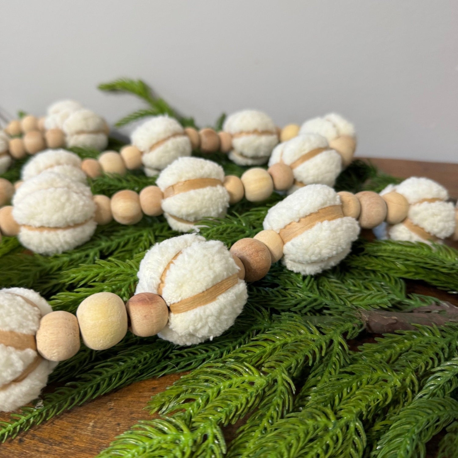 Sherpa + Wood Bead Garland: Ivory/Natural