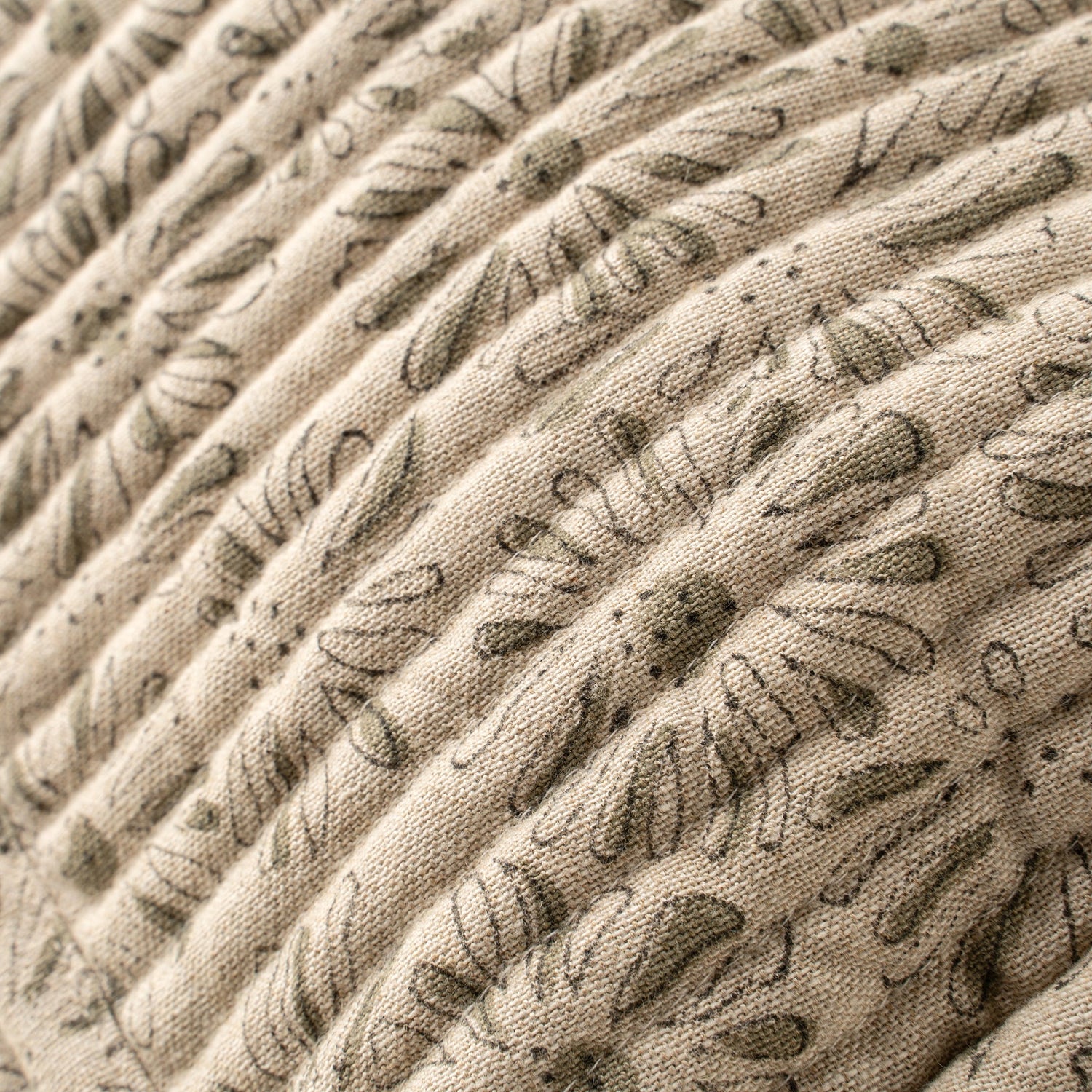 Subtle green floral design on a neutral cotton base