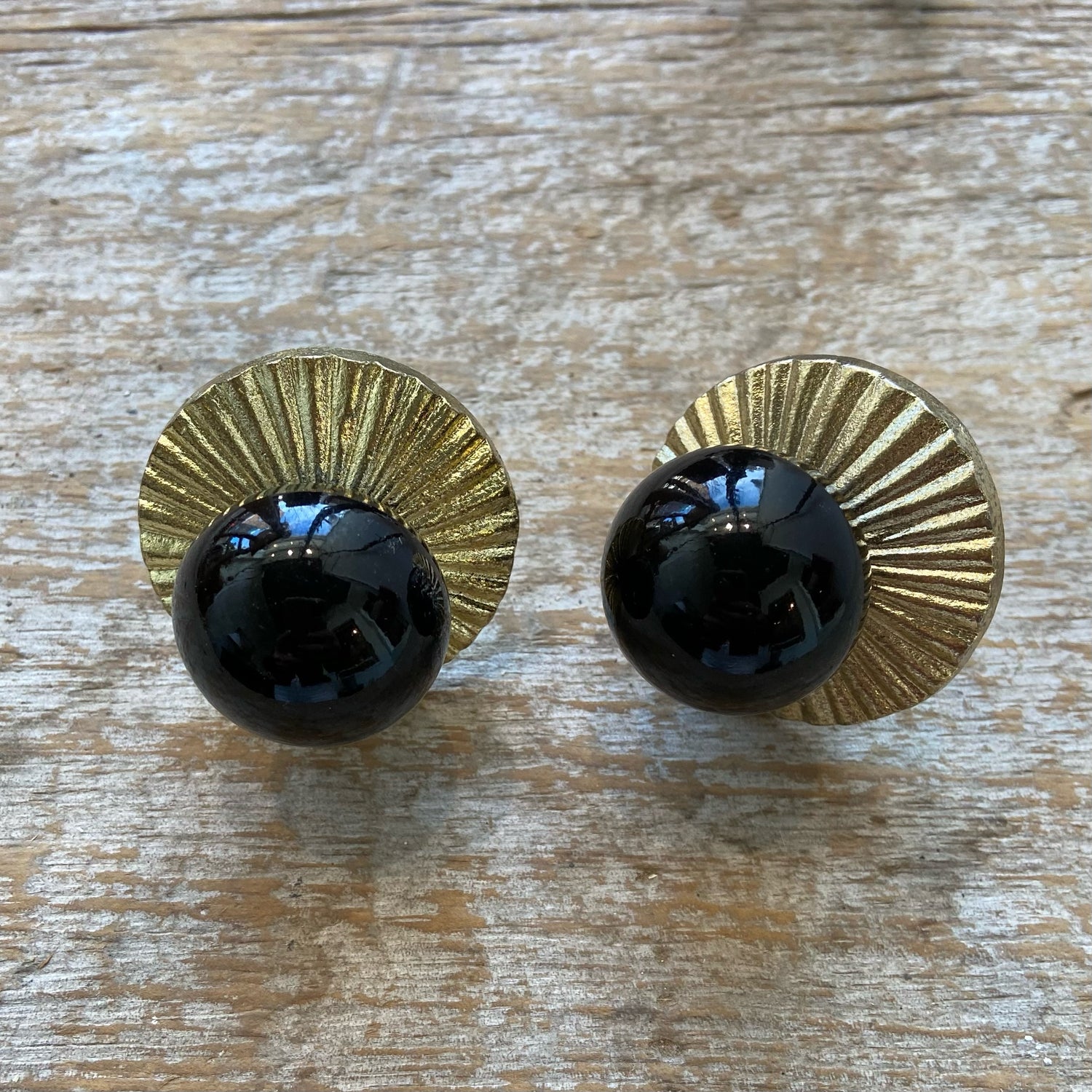 Upgrade your cabinets with our Knob: Ribbed Ceramic Brass + Black. This knob combines style and functionality, with its ribbed design and brass and black materials. Give your home a sleek and modern touch.