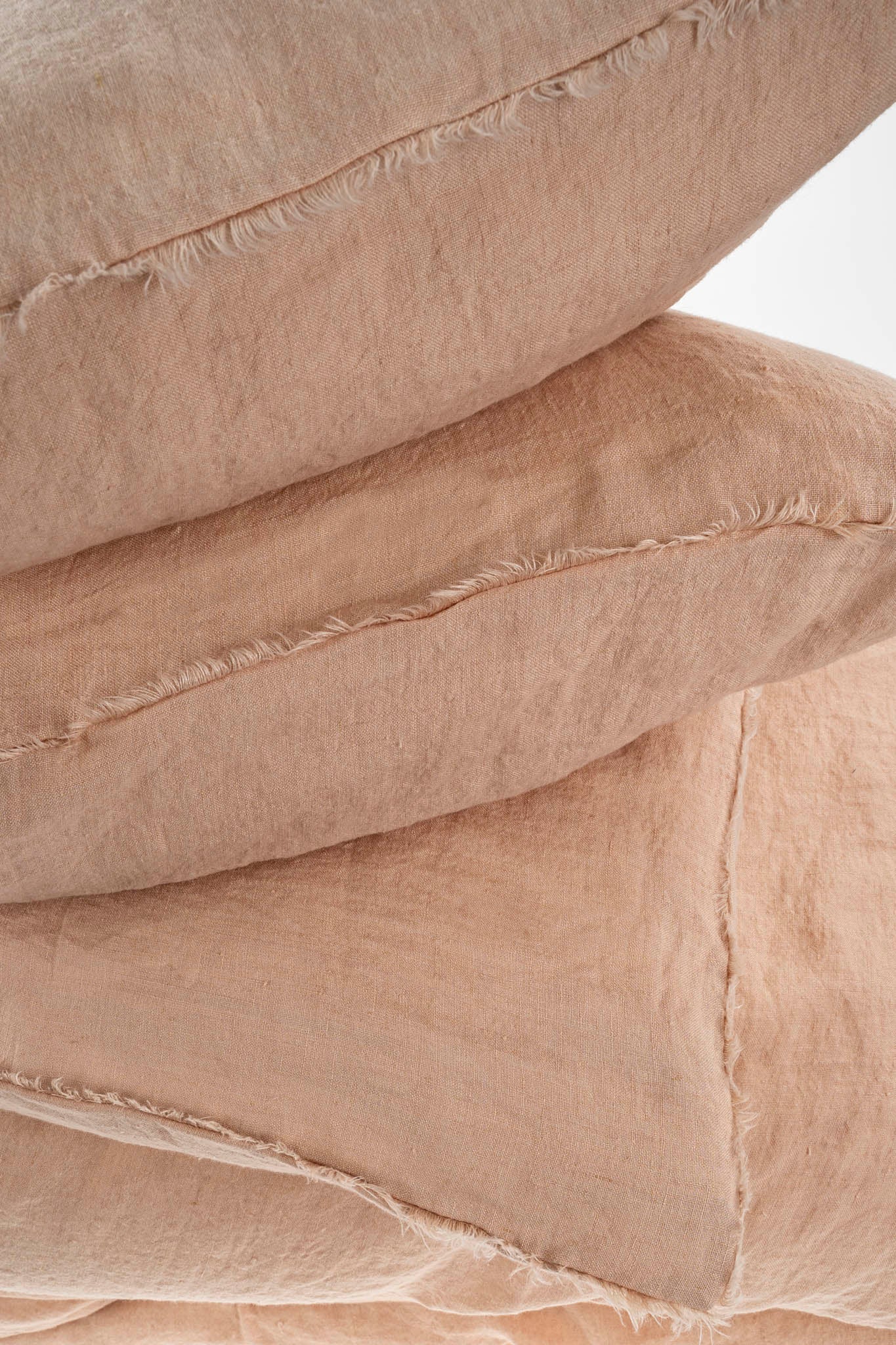 Unwind, decompress, and focus on me-time with the Lina Linen Duvet Set. Each set is made in India from 100% 160/170 GSM linen woven from Belgian and French flax, a material we love for its effortless luxury, relaxed look, sustainability, and breathability - it only gets better with time. They are pre-washed for softness, durability, and relaxed feel. Each set includes one King duvet cover and two King pillow cases and features include frayed edge, mother of pearl button closure at edge of duvet cover and back of pillowcases, internal ties, and spare button. Sets are packaged in matching linen bags with frayed edge patch describing contents. Pre-shrunk - 2-3% shrinkage may occur during first wash. Tested for colour-fastness. Machine wash - gentle cycle, tumble dry low, iron on low heat, do not dry clean.