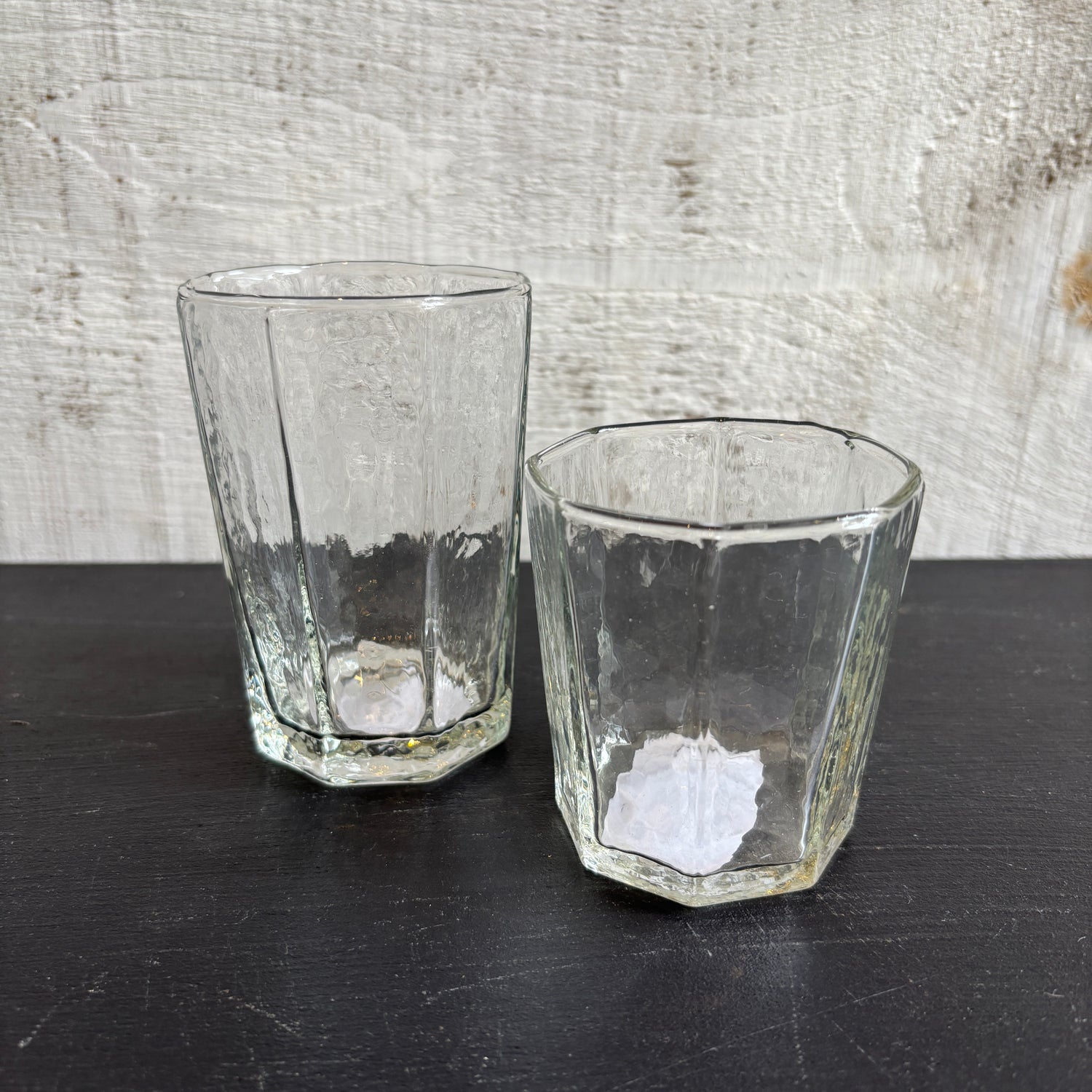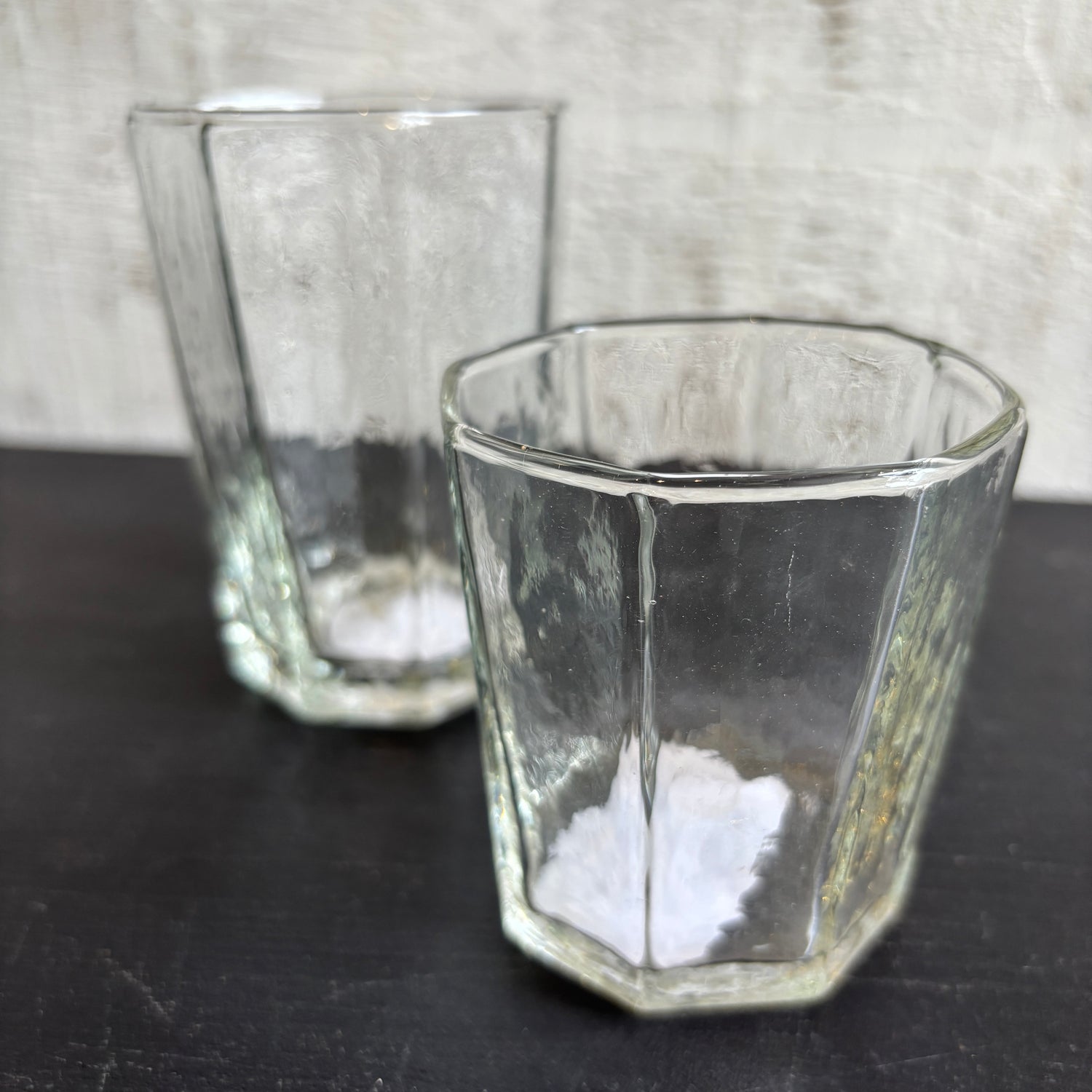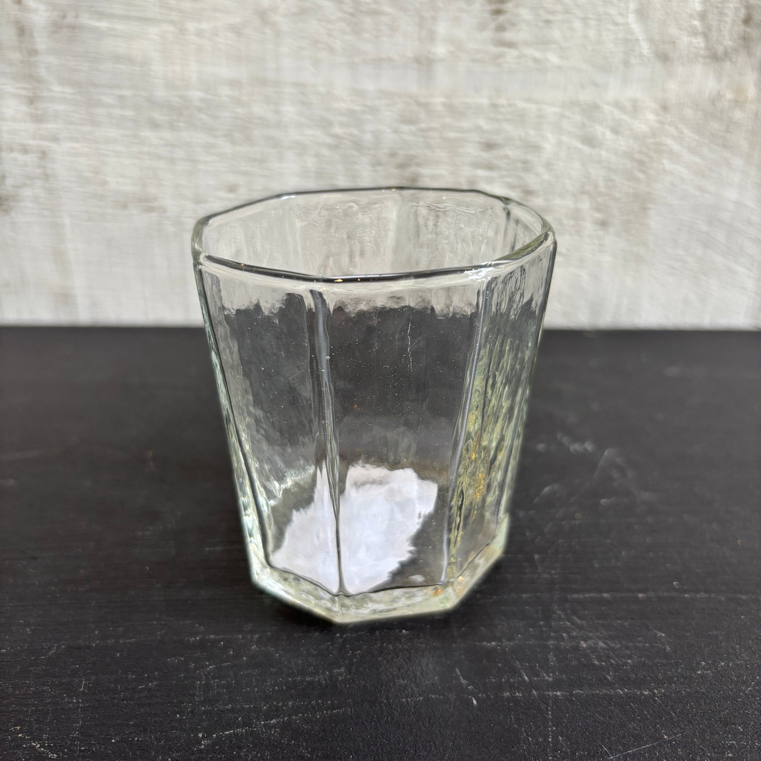 The Prism Glass drinking glass features a refined textured surface and a sleek angled design, combining elegance with functionality. Its angled silhouette adds a unique, contemporary touch, perfect for enjoying your favourite beverages with style and sophistication.