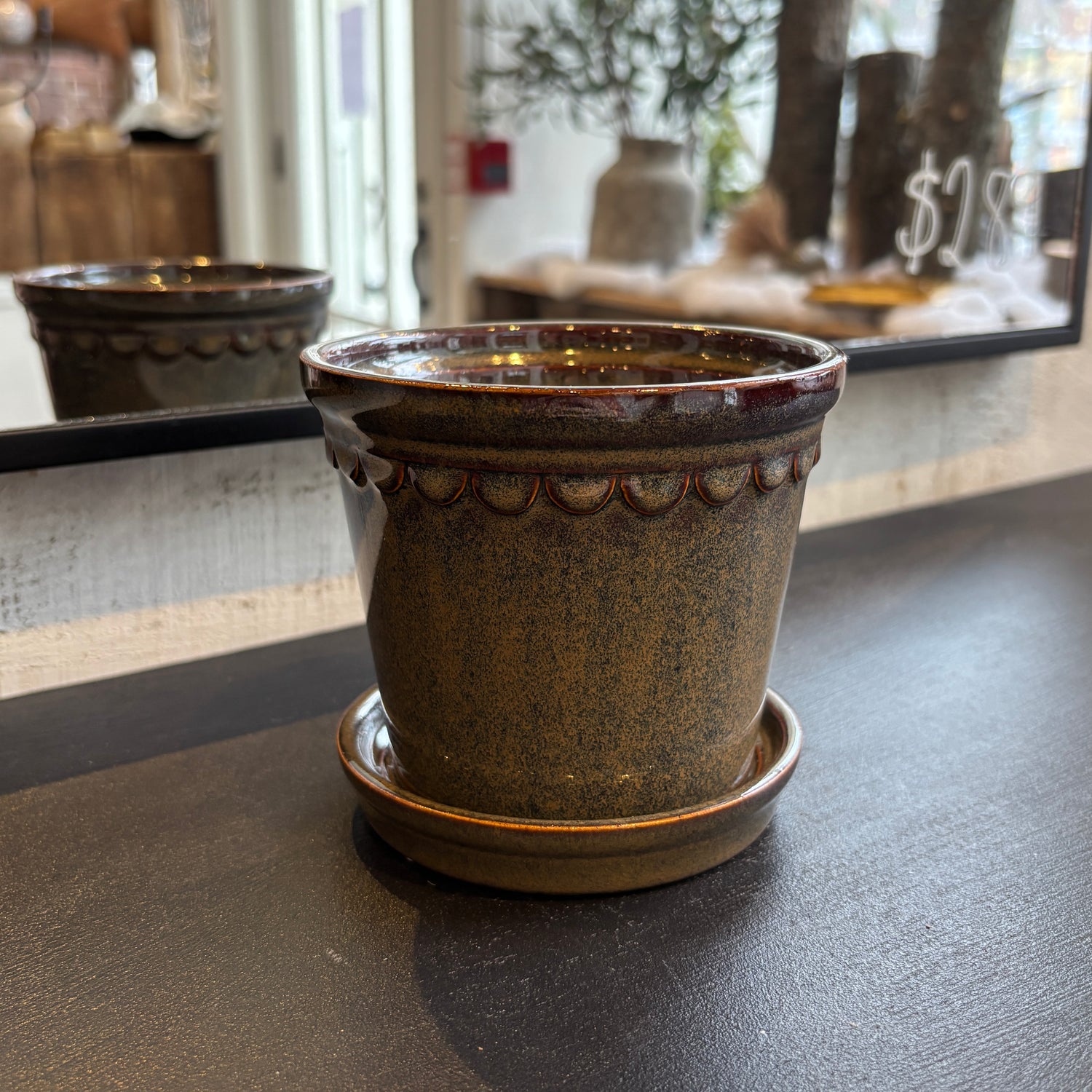 Elevate your plant display with this refined planter featuring an elegant scalloped rim that adds architectural interest to any space. The matching saucer provides practical protection for surfaces while the sophisticated design complements both modern and traditional décor. Perfect for showcasing your favourite greenery with understated elegance.