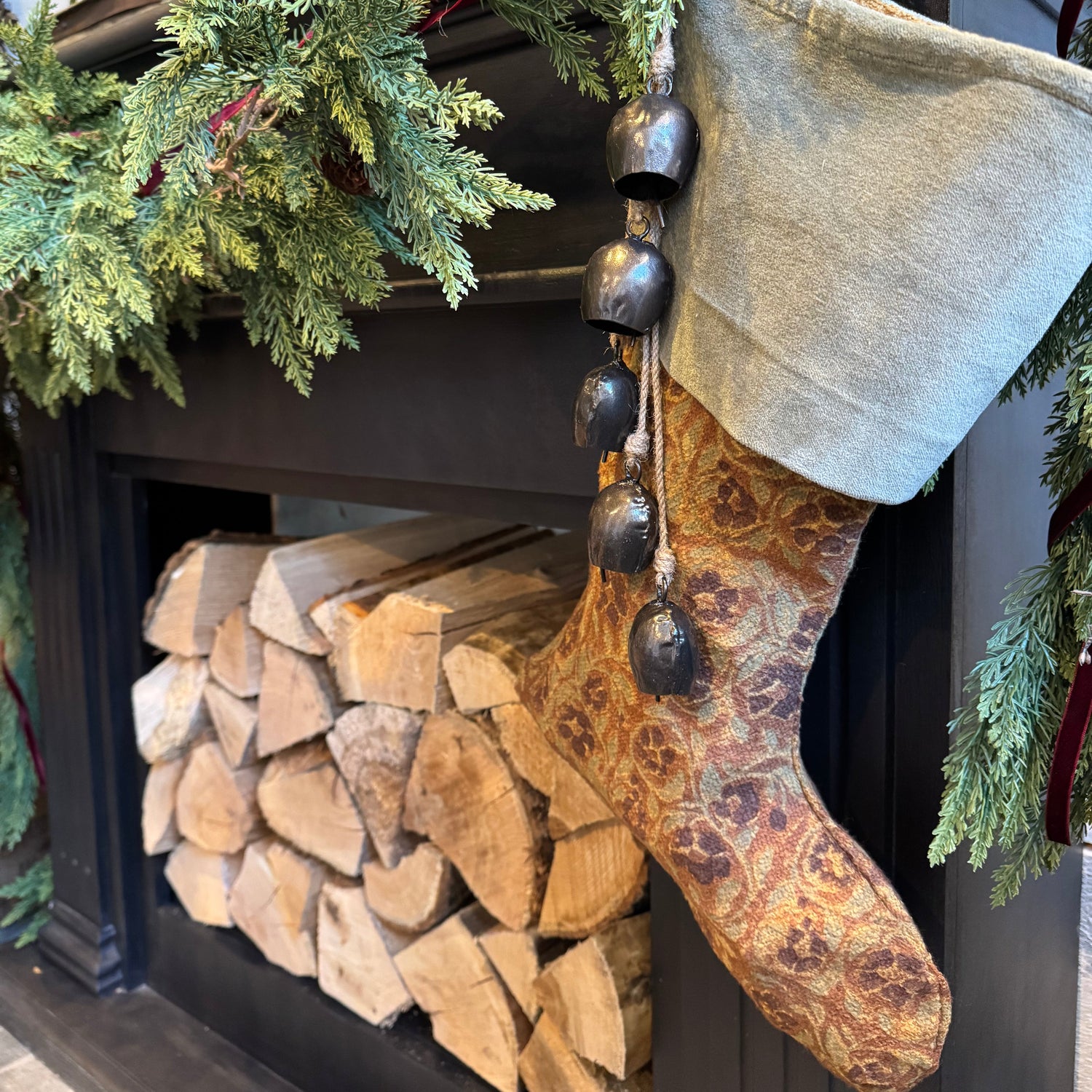 Elevate your holiday décor with this refined velvet stocking, featuring an intricate tulsi block print design that brings artisanal elegance to your mantelpiece. Crafted from sumptuous velvet fabric, it combines traditional textile artistry with contemporary sophistication. The detailed botanical motif adds a distinctive touch that complements both classic and modern interiors. Perfect for displaying treasured keepsakes or seasonal gifts, this stocking serves as a statement piece that celebrates craftsmanship and timeless style.