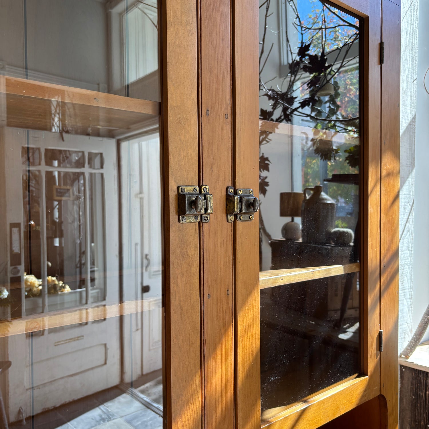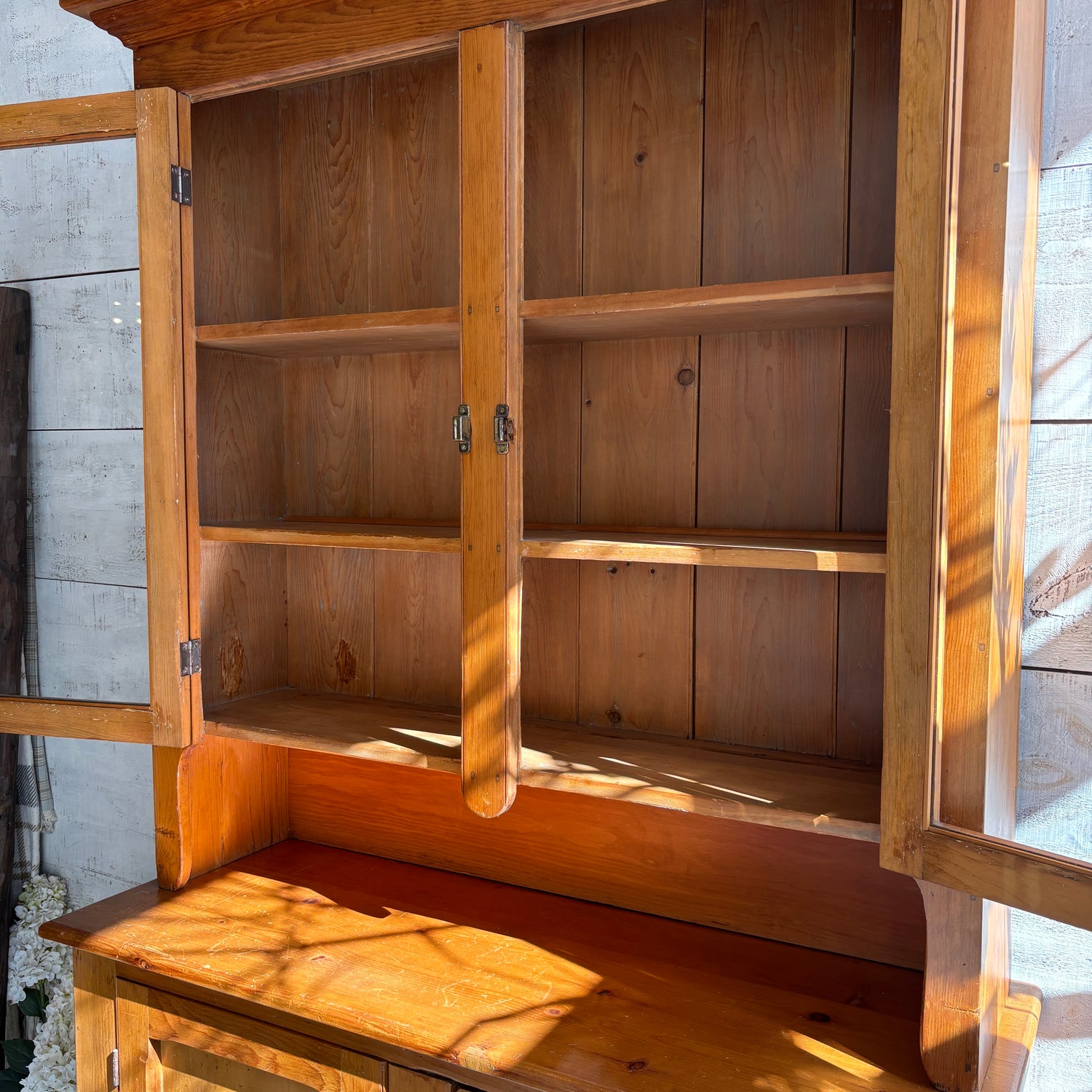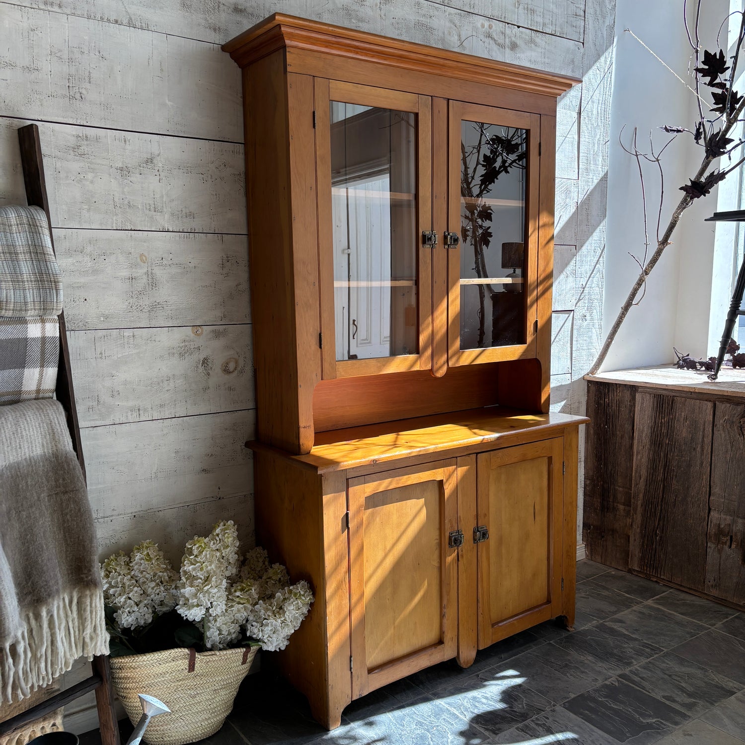 Vintage Two Piece Wood Stepback w/Glass Door Top