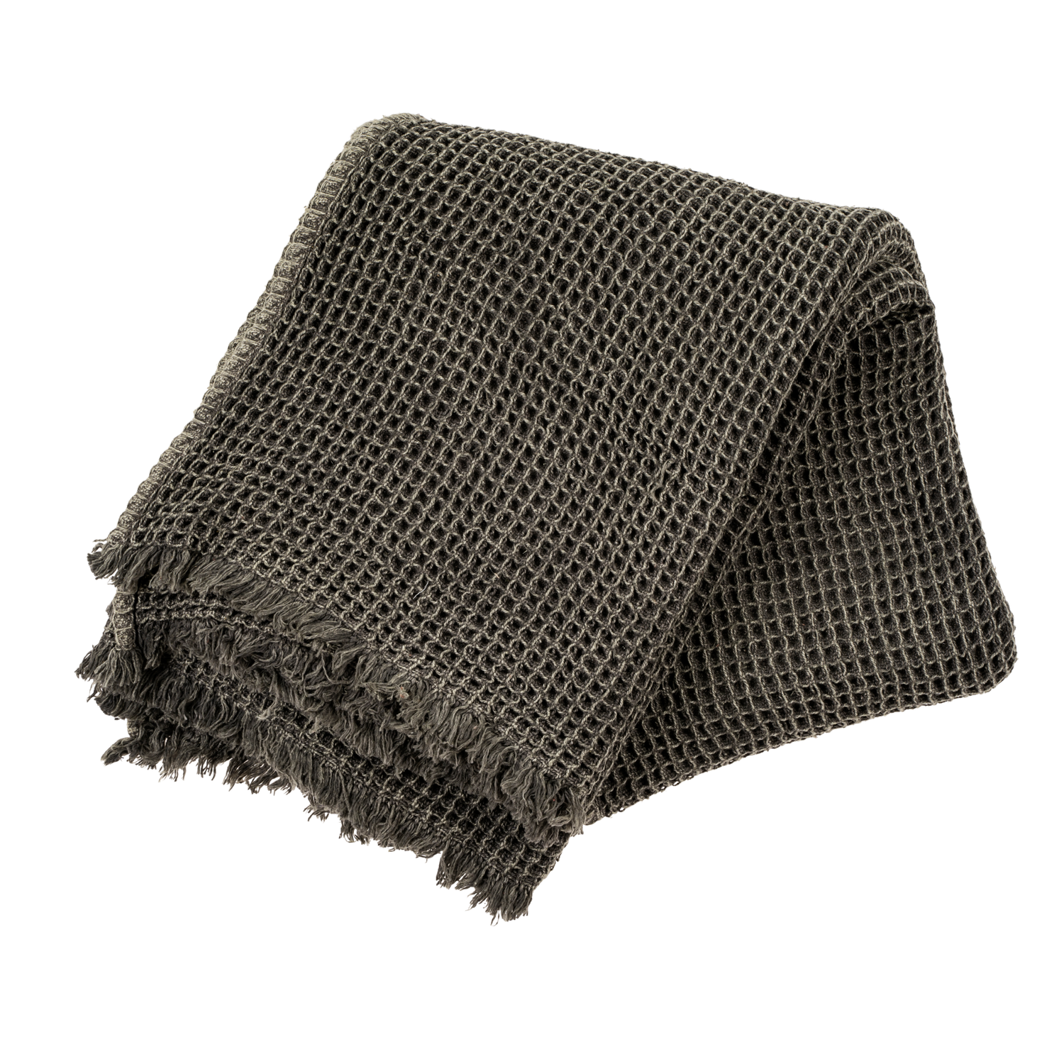 Our stonewashed Waffle throws are textured with a thick, dimensional waffle weave and are finished with a soft eyelash fringe. Each one has a colour coordinated Selena Linen End of Bed Blanket and Selena Linen Pillow. Machine Wash Gentle.