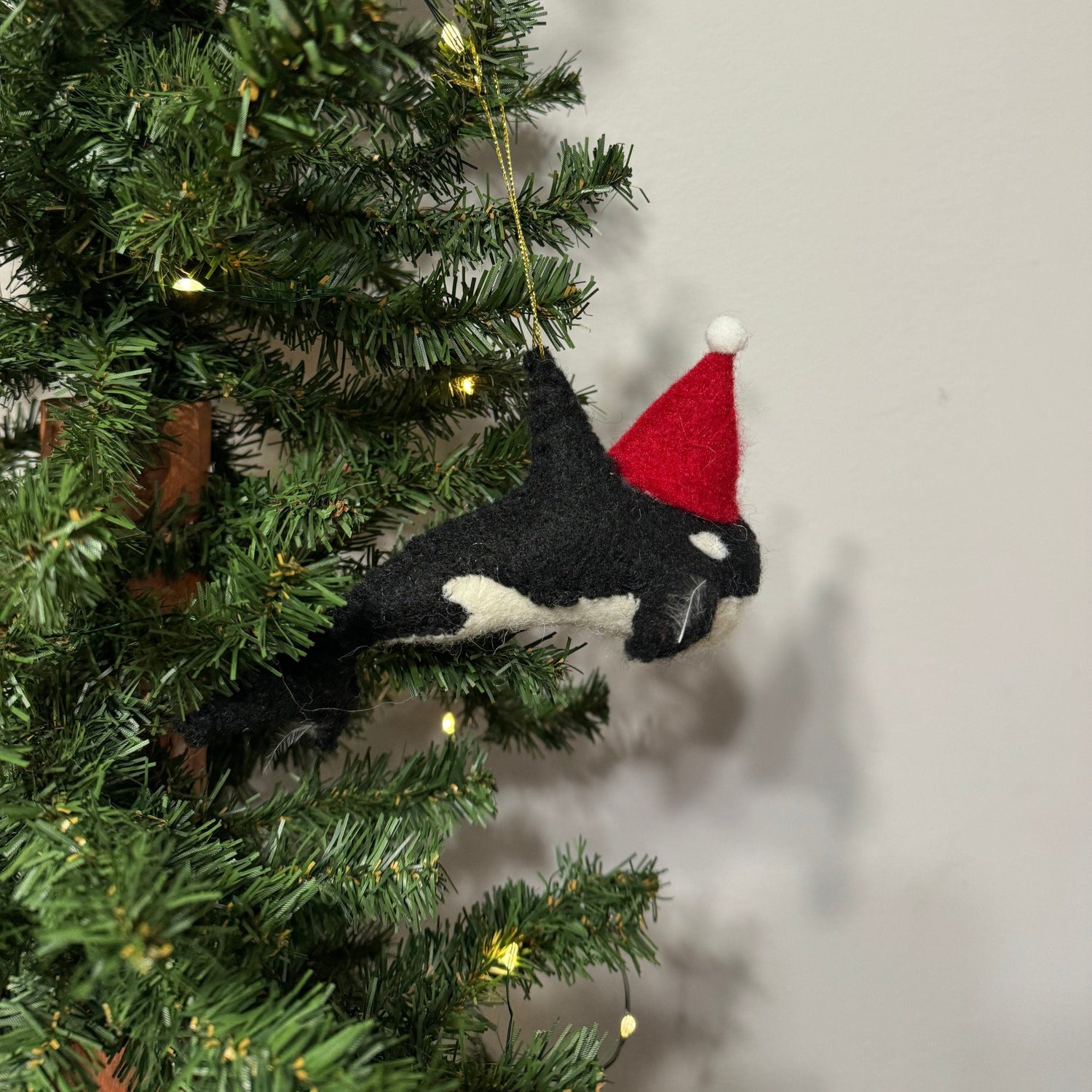 Wool Orca w/ Santa Hat Ornament: