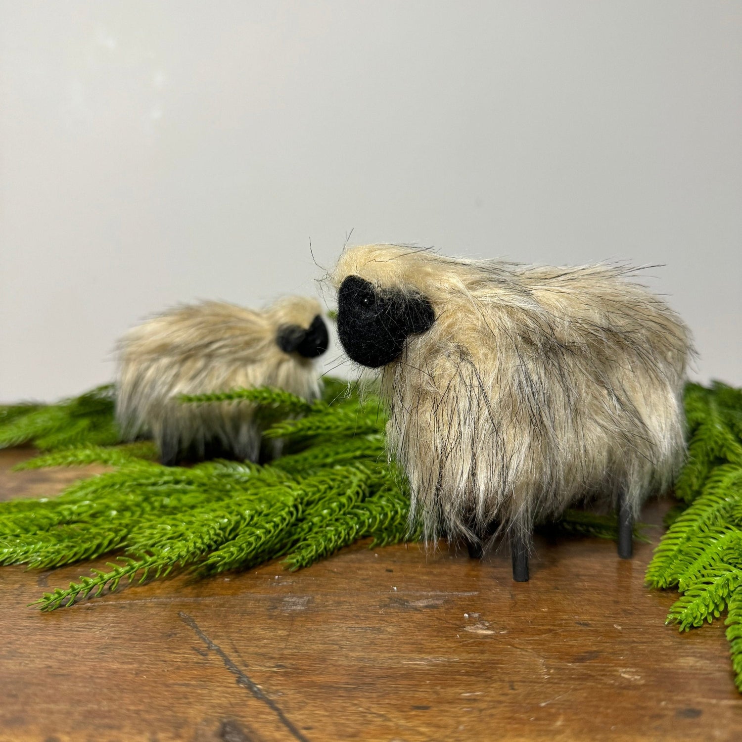 If you're looking to add a touch of cozy charm to your holiday decor this season, then these wool sheep Christmas decorations are the perfect choice. Available in two sizes, these adorable sheep are sure to bring a festive and rustic feel to any room. Made from soft and fluffy wool, they exude warmth and comfort while adding a whimsical touch to your space. Their neutral colour palette makes them versatile enough to complement any holiday theme or colour scheme. Whether displayed on a mantel, shelf, or nestled amongst greenery on a table centrepiece, these wool sheep will surely become a cherished part of your holiday traditions for years to come.